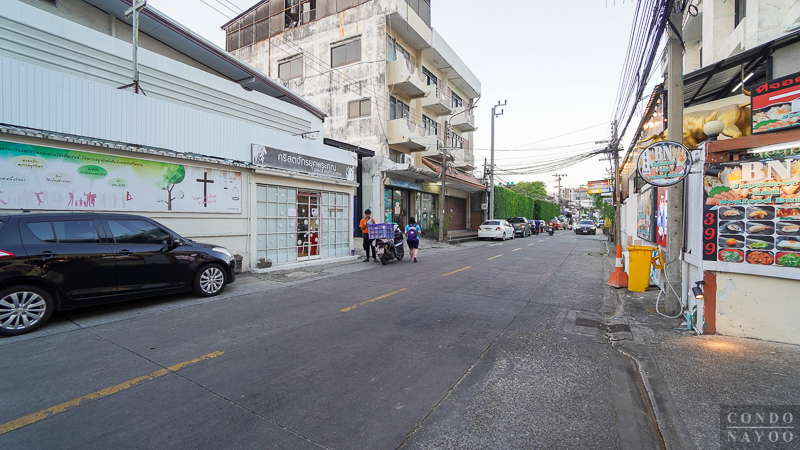 ภายในซอยจะมีร้านอาหารเกาหลี หอพัก โรงแรม และกลุ่มที่อยู่อาศัยแนวราบ