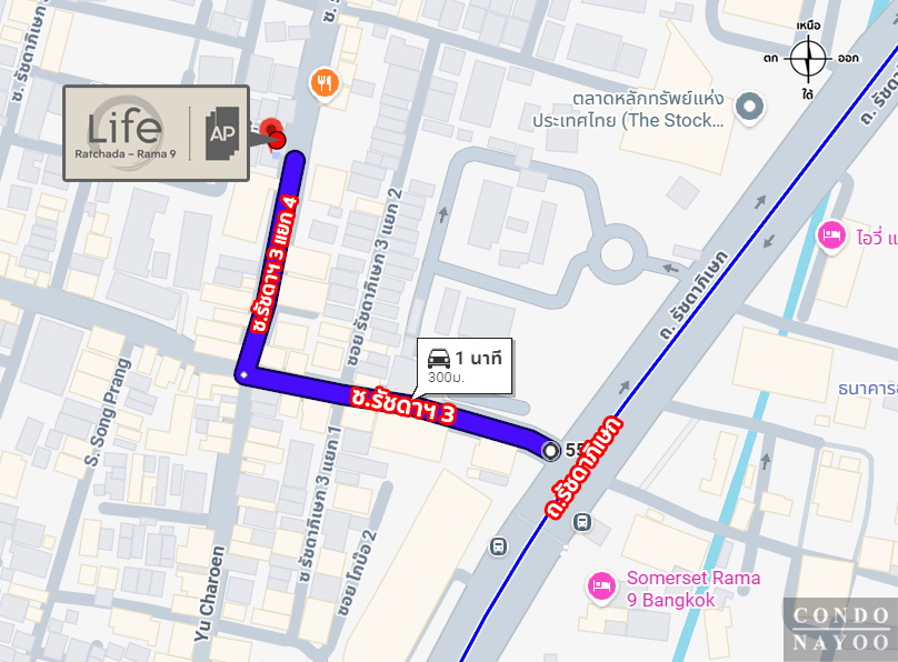 ถึงโครงการ Life รัชดา-พระราม 9 ทางฝั่งซ้ายมือ