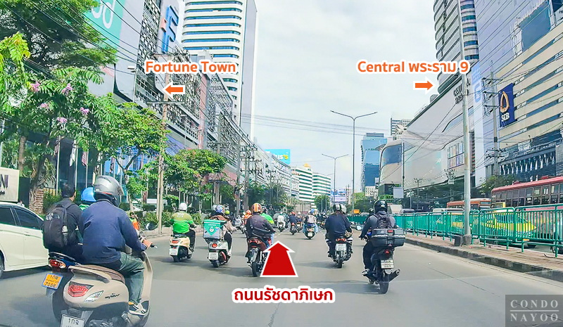 ข้ามแยกพระราม 9 มาเชื่อมกับถนนรัชดาภิเษก จะผ่าน Fortune Town, MRT พระราม 9 และ Central พระราม 9 ไป