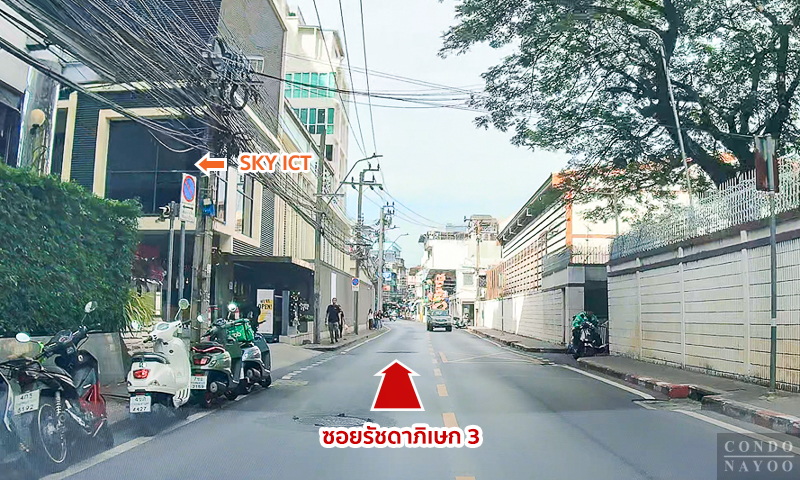 ขับตรงไปในซอยรัชดาภิเษก 3 ผ่าน SKY ICT ทางฝั่งซ้ายมือ