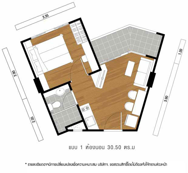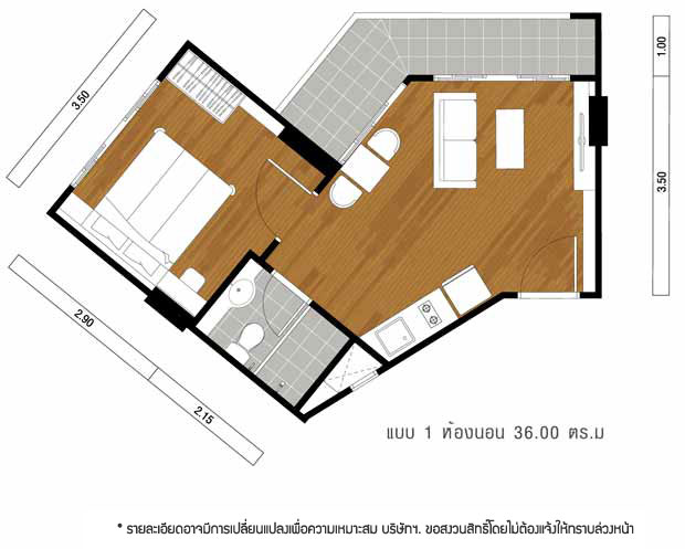 1 ห้องนอน 26.00 ตร.ม. / 1 ห้องนอน 30.50 ตร.ม. / 1 ห้องนอน 36.00 ตร.ม / 2 ห้องนอน 45.00 ตร.ม.(Combine)