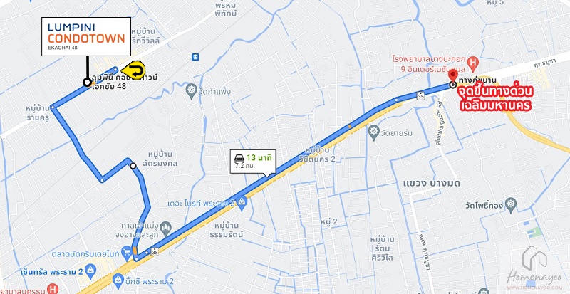 ถนนราชพฤกษ์ > ถนนกัลปพฤกษ์ > ซอยเอกชัย 36 > ถนนเอกชัย > กลับรถ > โครงการ Lumpini Condotown เอกชัย 48