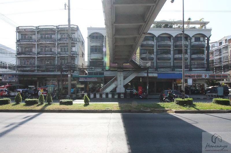 เรามาเดินดูบรรยากาศโดยรอบโครงการกันค่ะ มาดูว่าทำเลนี้มีอะไรดีและอยู่ง่ายอย่างที่บอกหรือไม่ เริ่มจากที่ฝั่งตรงข้ามกับโครงการ จะเป็นอาคารพาณิชย์ โดยคูหาที่อยู่ตรงกันจะเป็นธนาคาร UOB ค่ะ
