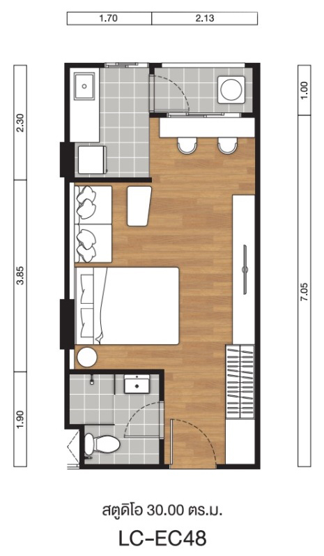 แปลนห้อง Studio ขนาด 29.50-30.50 ตร.ม.