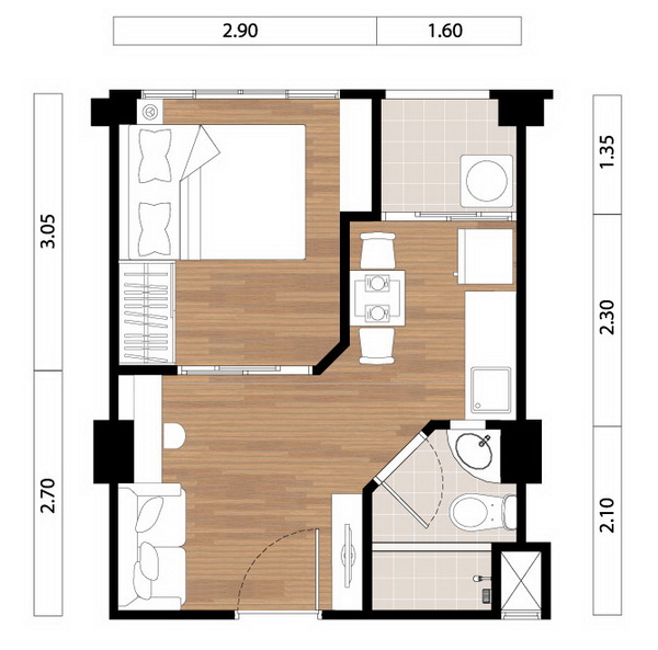 | ลักษณะห้องและขนาดห้อง | – 1 Bed / 25.00 – 26.00 ตร.ม. – ห้องชุดร้านค้า / 70 ยูนิต |