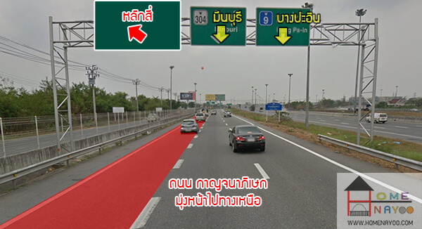จากนั้น ผมชิดซ้าย ตามป้ายบอกทาง ถนนหมายเลข 304/หลักสี่