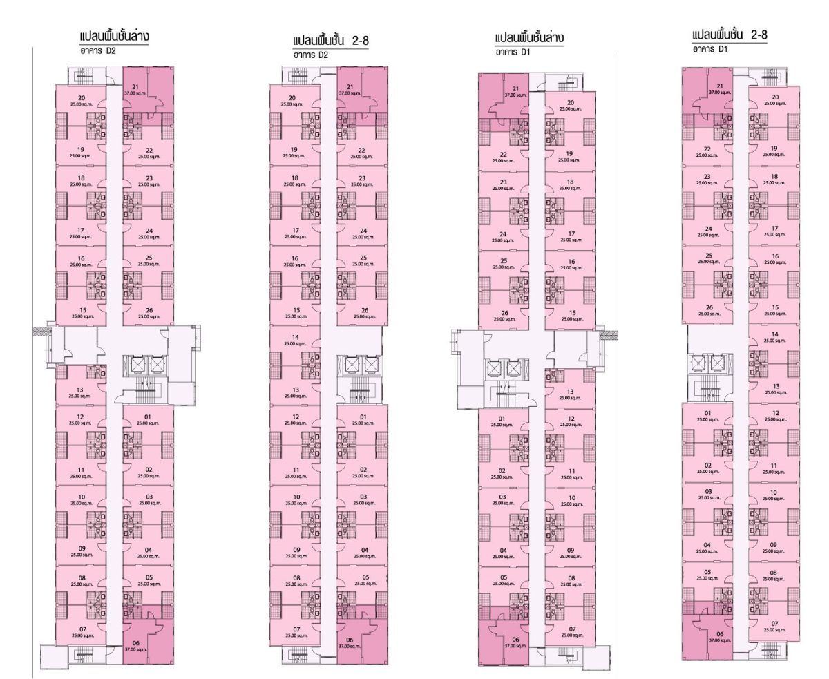 | ลักษณะห้องและขนาดห้อง | – Studio / 25.0 ตร.ม. – 1 Bed / 28.0 – 41.5 ตร.ม. – ห้องชุดร้านค้า (5 ยูนิต) |