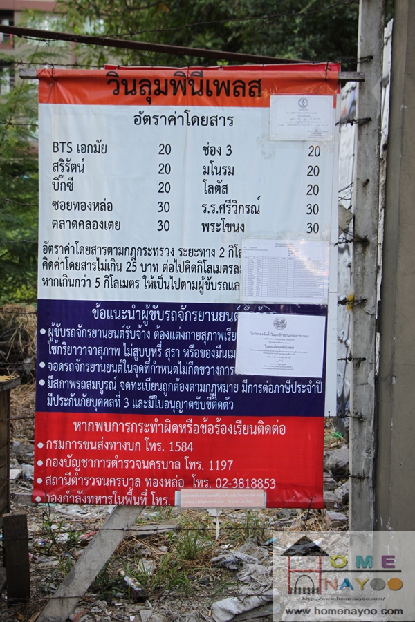 หน้าโครงการ ลุมพินี เพลส พระราม 4-กล้วยน้ำไท จะมีวินมอเตอร์ไซค์รับจ้างอยู่ ราคาก็ตามป้ายเลยนะครับ