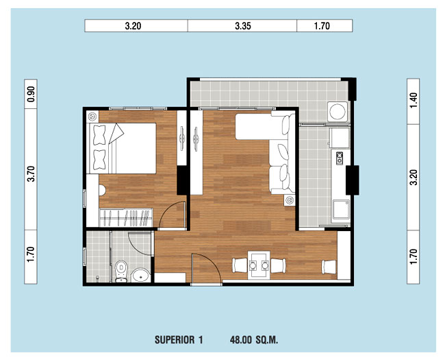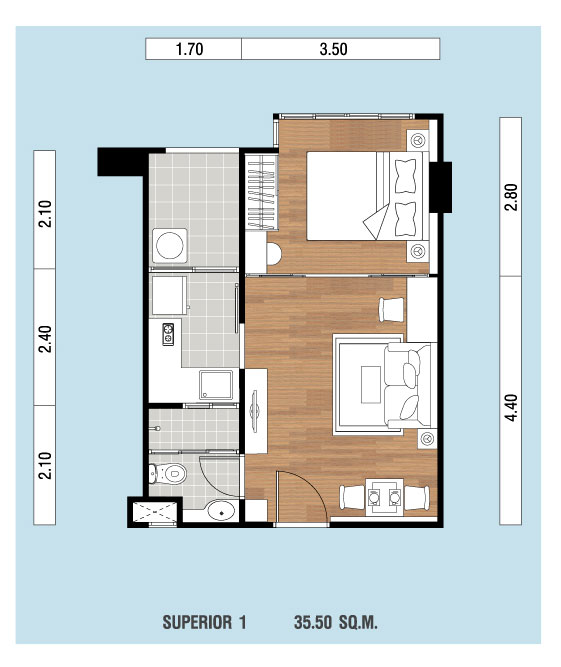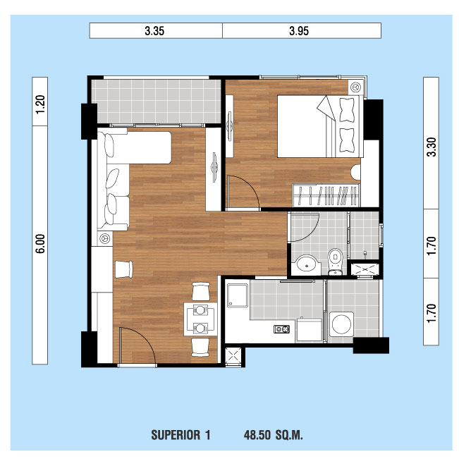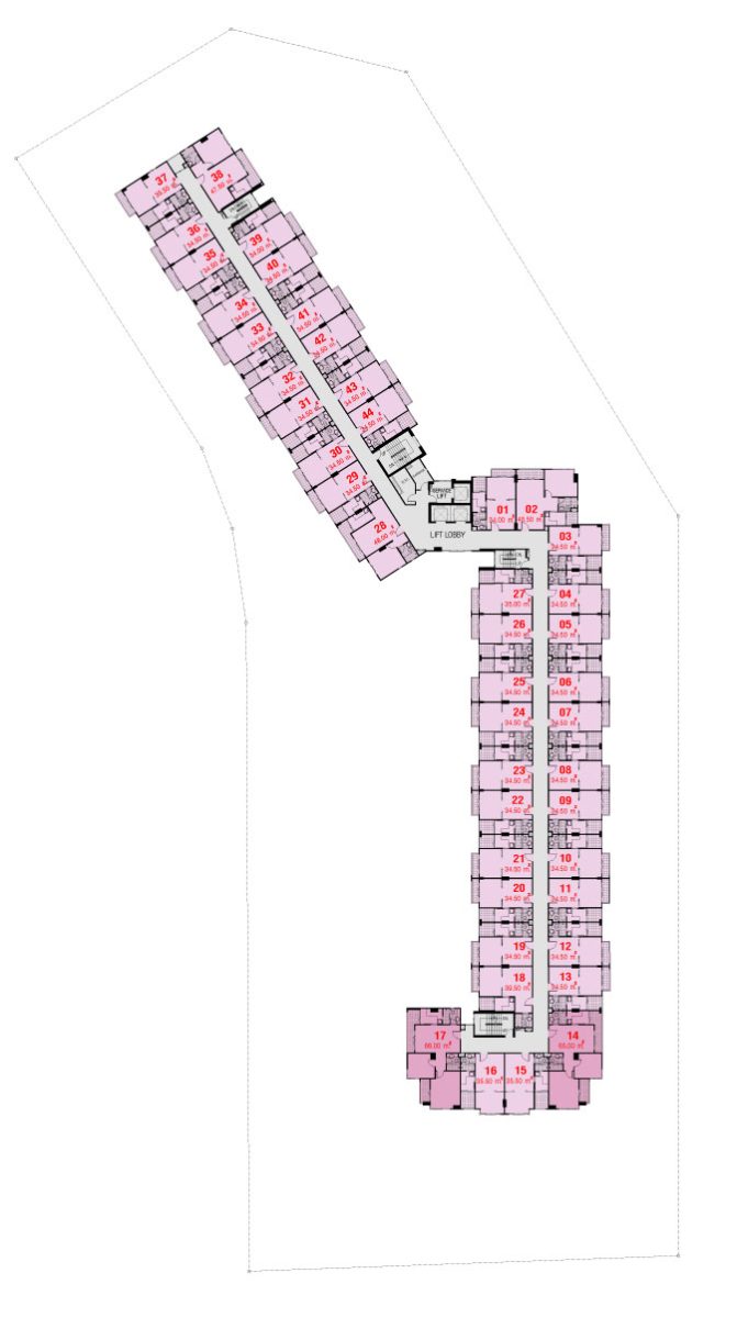 | ลักษณะห้องและขนาดห้อง | – 1 Bed / 33.50 – 48.50 ตร.ม. – 2 Bed / 65.00 – 66.00 ตร.ม. – ห้องชุดร้านค้า (7 ยูนิต) |