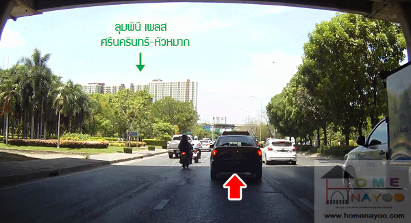 ถึงแยกพัฒนาการให้เราตรงไปครับ จากจุดนี้มองเห็นโครงการ ลุมพินีเพลส ศรีนครินทร์-หัวหมากสเตชั่นอยู่ทางขวามือ