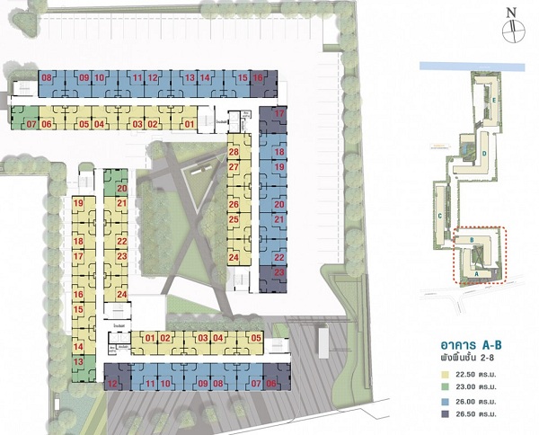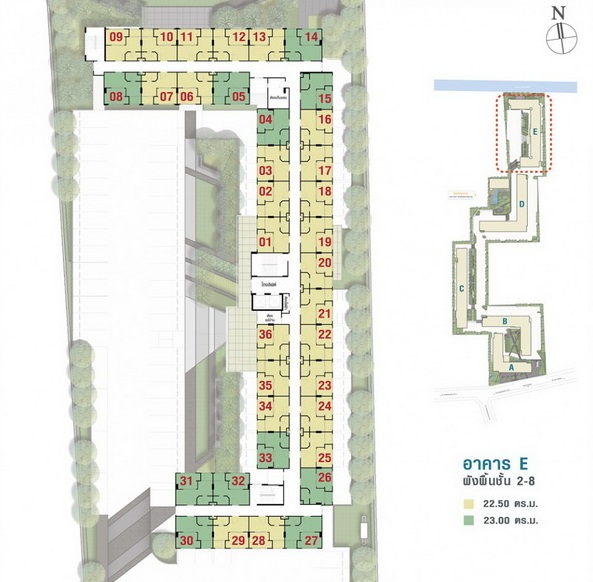 ห้องชุดพักอาศัยขนาด 22.50 ตร.ม. เริ่มต้นเพียง 1.08 ตร.ม. (อาคาร E)