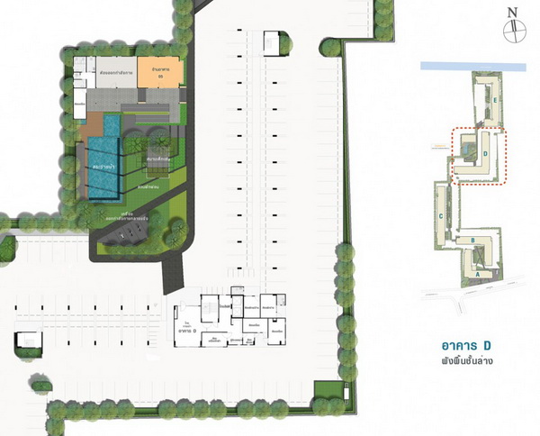 ส่วนสระว่ายน้ำ และห้องฟิตเนส จะอยู่ที่อาคาร D ชั้น 1 โครงการลงต้นไม้ใหญ่เลือกพันธุ์ไม้ที่ทนแล้งได้เป็นอย่างดี มีการปลูกไม้ดอก ปูสนามหญ้าเพื่อสร้างบรรยากาศให้ดูร่มรื่น เหมาะแก่การพักผ่อน มีสนามเด็กเล่น ลานกิจกรรมกลางแจ้ง รวมไปถึง Jogging Track ที่สามารถวิ่งออกกำลังกายจริงจังได้เลย