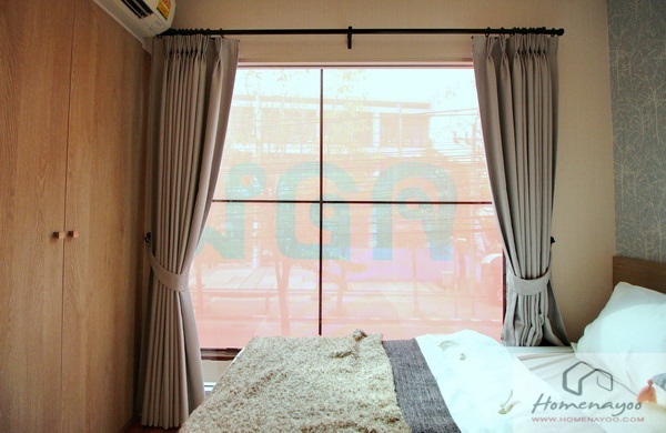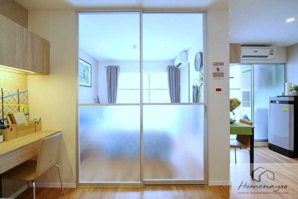 ถัดเข้าไปดูห้องนอน มีการกั้นประตูกระจกบานเลื่อน แยกกันเป็นสัดส่วน