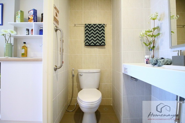 ห้องน้ำขนาดกะทัดรัด แต่ก็แยกส่วนแห้ง และส่วนเปียกไว้คนละฝั่ง