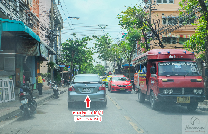 ด้านหน้าโครงการติดกับถนนซอยสุขุมวิท 101/1 หรือถนนวชิรธรรมสาธิต