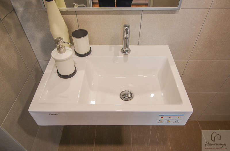 ได้อ่างล้างหน้าทรงสี่เหลี่ยมของ Charmer มีพื้นที่ให้วางของด้านข้าง