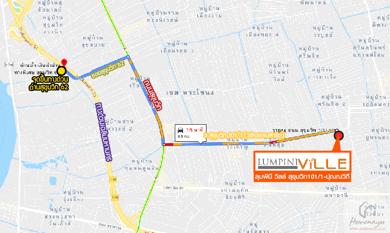 สรุปการเดินทาง ถนนสุขุมวิท > ซอยสุขุมวิท 101/1 หรือถนนวชิรธรรมสาธิต > Lumpini Ville สุขุมวิท 101/1 – ปุณณวิถี