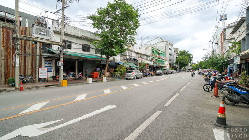 ช่วงต้น ๆ ซอยจะมีร้านขายอะลูมิเนียม สแตนเลสร้านใหญ่ ส่วนอีกฝั่งจะเป็น Service Apartment