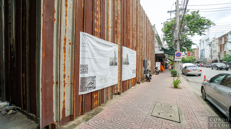 พาเดินดูบรรยากาศรอบ ๆ กันหน่อยค่ะ ด้านหน้าจะเป็นที่ดินของโครงการ ได้เป็นที่ดินหัวมุม ซึ่งเดิมตรงนี้จะเป็นศูนย์บริการรถยนต์ ISUZU สาขาหัวลำโพง ที่ถูกรื้อถอนไปเรียบร้อยแล้ว