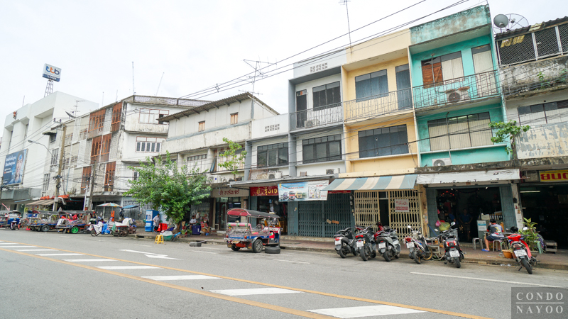 ตรงขึ้นมาจะเป็นตึกแถวร้านค้าทั้งหมดเลยค่ะ