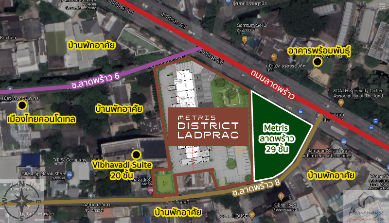 ทำเลที่ตั้งโครงการ – Metris District Ladprao ตั้งอยู่ใจกลางเมืองย่านลาดพร้าว เป็นทำเลที่โดดเด่นเหมาะสำหรับการอยู่อาศัยเอง และปล่อยเช่าทั้งนักเรียนนักศึกษาหรือกลุ่มพนักงานจาก SCB , PTT , SCG และอาคารสำนักงานรอบ ๆ ที่มีอยู่เยอะมาก หรือคนที่ทำงานในแนวรถไฟฟ้าทั้งแนว BTS และรถไฟฟ้าใต้ดิน MRT เนื่องจากเป็นทำเลที่เดินทางสะดวก เชื่อมต่อได้หลากหลาย