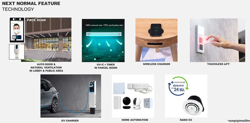 ภายในโครงการได้นำเทคโนโลยีใหม่ๆเข้ามาใช้ทั้ง Face Scan ในการเข้าออกอาคาร พร้อมประตูอัตโนมัติ, UV-C+Timer ในห้องเก็บพัสดุ, Wireless Charger, Touchless Lift, EV Charger, Home Automation ทุกยูนิต, Panasonic Nanoe-X นวัตกรรมกำจัดและยับยั้งเชื้อไวร้ส