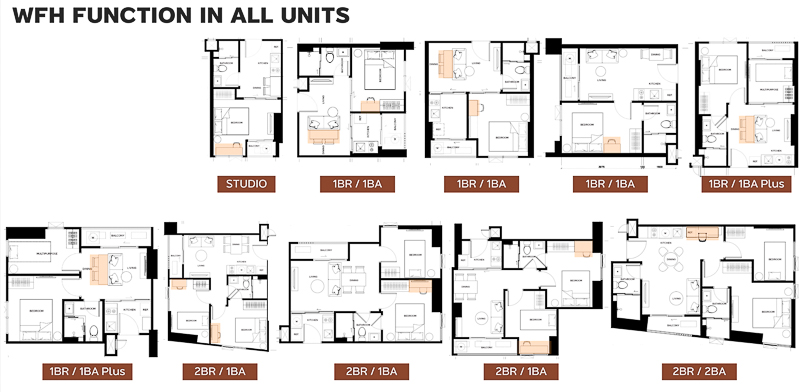 ห้องออกแบบมาได้กว้าง แต่ละส่วนใช้งานได้จริง เวลาอยู่อาศัยรู้สึกไม่อึกอัด ฝ้าสูง 2.6 ม. แบ่งพื้นที่เป็นสัดส่วน มีช่องแสงที่ส่องเข้าถึงภายในห้องได้เยอะ จุดเด่นของแปลนห้องโครงการนี้คือจะได้ฟังก์ชันสำหรับ Work From Home ในทุกยูนิต รองรับกับไลฟ์สไตล์ในยุคปัจจุบัน