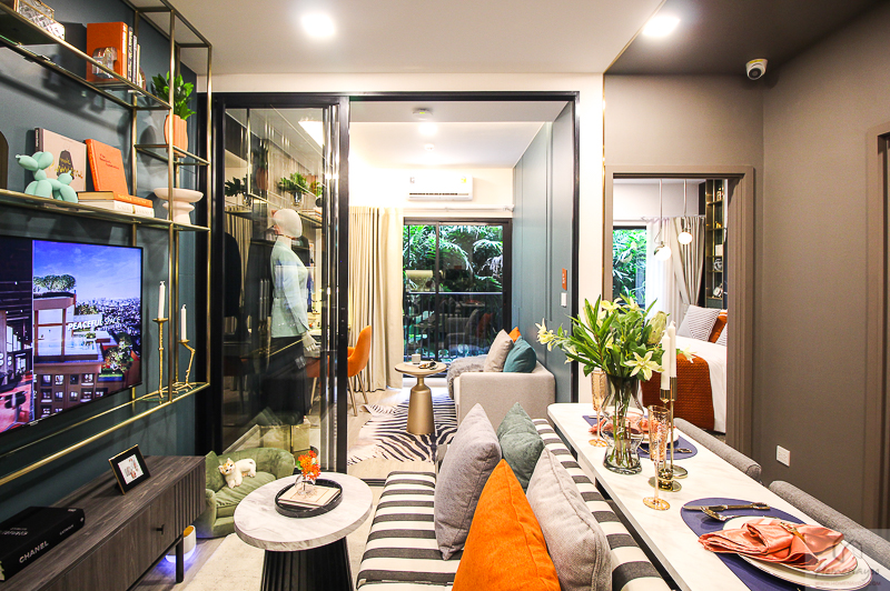 วันนี้เรามีห้องตัวอย่างมาให้ชม 2 แบบ เป็นห้อง 1 Bedroom ขนาด 30.7 ตร.ม. และ 1 Bedroom Plus ขนาด 34.7 ตร.ม. โดยโครงการขายแบบ Fully Furnished จะได้ตู้วางทีวี, โซฟา, โต๊ะกลาง, โต๊ะรับประทานอาหาร, เตียงนอน, โต๊ะข้างเตียง, โต๊ะทำงาน, ตู้เสื้อผ้า, ชุดครัว, แอร์ติดผนัง, สุขภัณฑ์ในห้องน้ำ, CCTV, Nanoe-X และระบบ Home Automation