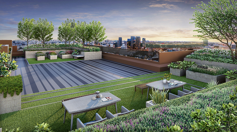 Sky Urban Farm และ Party Deck ที่ชั้น 45 ชั้นบนสุดของอาคาร พื้นที่พักผ่อนหรือไว้จัดปาร์ตี้เล็กๆ พร้อมชมวิวเมืองได้รอบๆ มีส่วนที่เป็นแปลงผักสวนครัว ลูกบ้านสามารถนำไปประกอบอาหารได้
