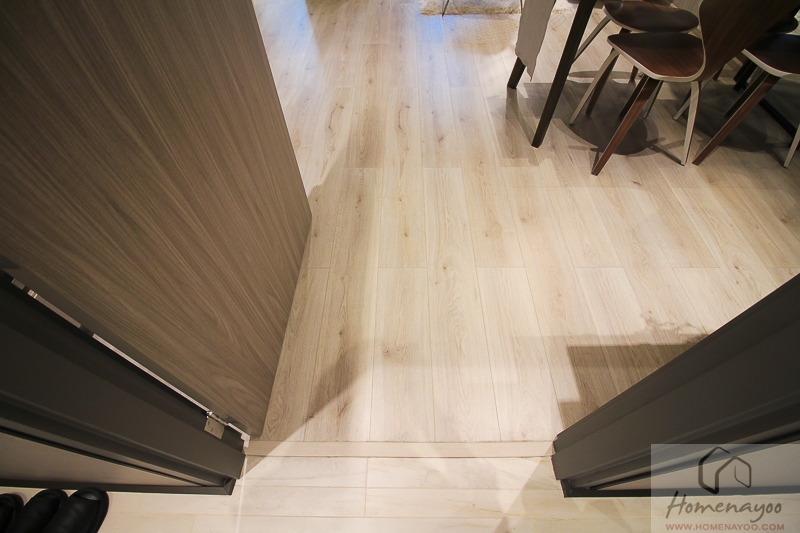 พื้นห้องเก็บรอยต่อด้วยธรณีประตูเรียบร้อย ปูด้วยลามิเนตหนา 8 มม.ตามมาตรฐาน
