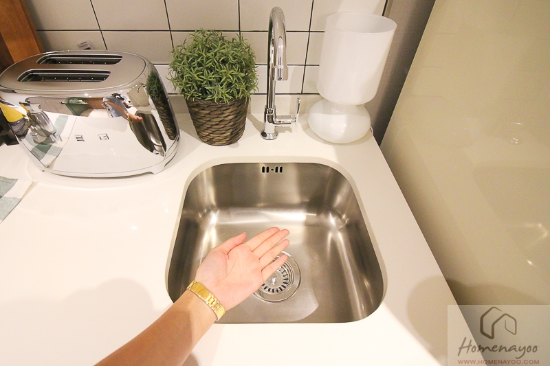 อ้างล้างจานขนาดกระทัดรัด จาก Hafele เช่นกัน ล้างพวกแก้วหรือจานชามได้ไม่มีปัญหา แต่ถ้าเป็นหม้อหรือกระทะขนาดใหญ่นี่จะยากหน่อย