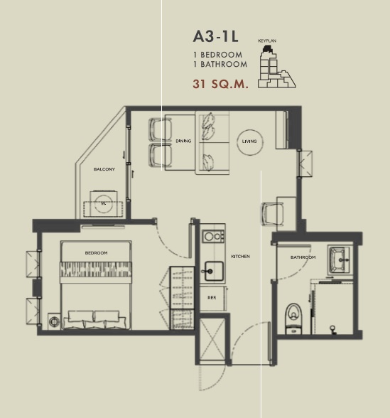 แบบห้อง TYPE A3-1L : 1 Bedroom 1 Bathroom