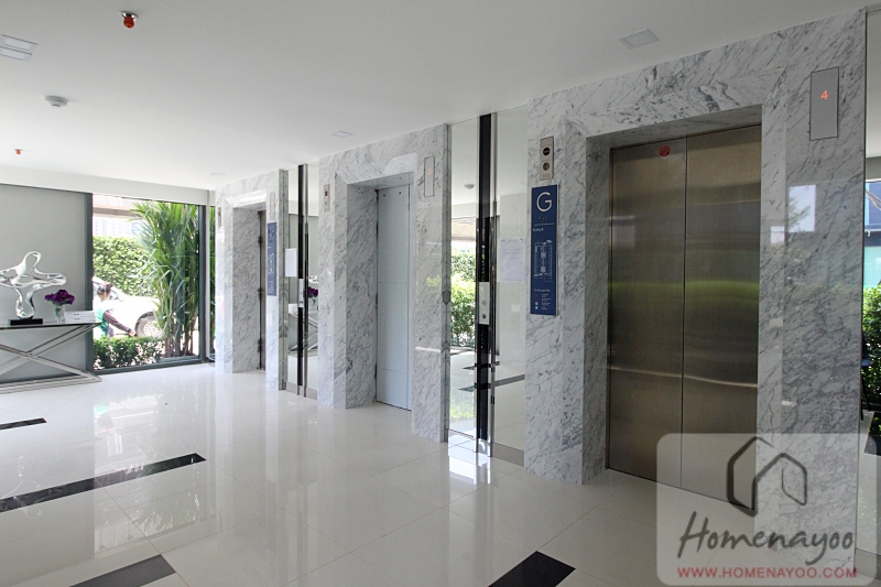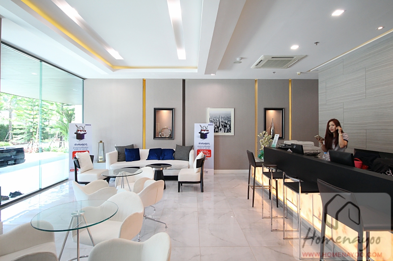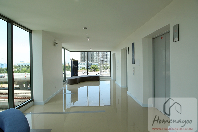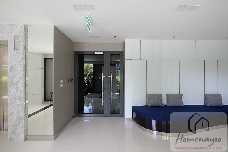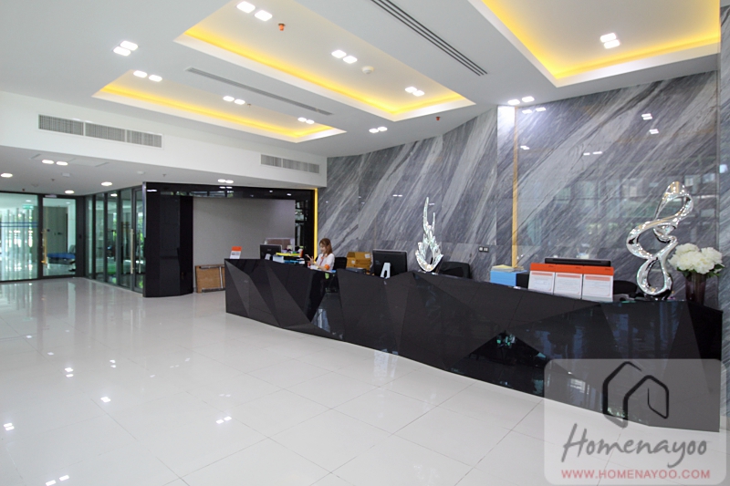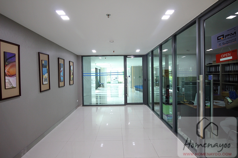 ซ้ายมือของเคาน์เตอร์ประชาสัมพันธ์จะเป็นทางเข้าไปโถงลิฟต์ ขวามือของทางเข้าโถงลิฟต์จะเป็นสำนักงานนิติบุคคล ตรงไปเป็นทางเข้าโถงลิฟต์
