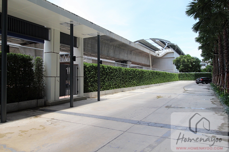 จะมีประตูทางออกไปรถไฟฟ้าได้แบบนี้ เวลาคนในโครงการจะเข้ามาต้องสแกนการ์ดเข้ามาเพื่อความปลอดภัยค่ะ