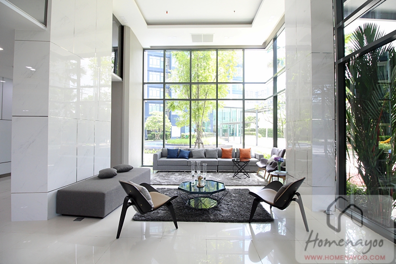 ตอนนี้โครงการสร้างเสร็จทั้ง 3 อาคารแล้วค่ะ แต่วันที่ไปถ่ายทำอาคารอื่นๆกำลังอยู่ในระหว่างเก็บความเรียบร้อยหน้างาน ซึ่งแต่ละอาคารจะมีล็อบบี้และส่วนกลางแยกกันแต่ละอาคาร แต่ก็สามารถมาใช้งานร่วมกันได้ โดยวันนี้เราจะพาไปดูอาคาร B สูง 21 ชั้น ซึ่งเก็บหน้างานเรียบร้อยแล้วกันนะคะ