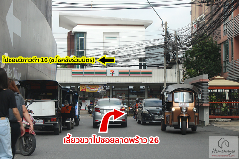 จากโครงการเดินออกมา 500 เมตร ถึงหน้าปากซอยลาดพร้าว 26 และ ถนนลาดพร้าว
