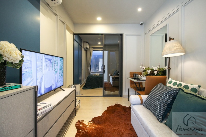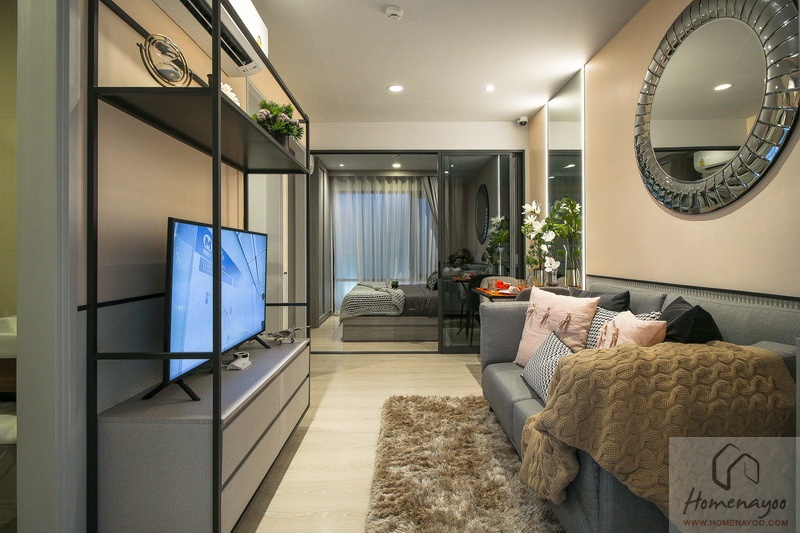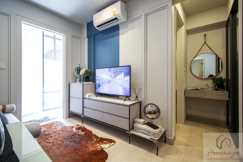 ภายในห้องก็จะได้เฟอร์นิเจอร์บิวท์อิน-ลอยตัวที่ออกแบบมาให้ลงตัว Lay-Out ครบชุดเช่นเดียวกัน Mood & Tone ของเฟอร์นิเจอร์จะมาในโทนสีเทา ตัดกับเฟอร์นิเจอร์ลายไม้ ขับให้ห้องดูโปร่ง กว้าง สว่าง สบายตา เติมบรรยากาศให้ห้องดูสดชื่น และ น่าอยู่อาศัยได้เป็นอย่างดี