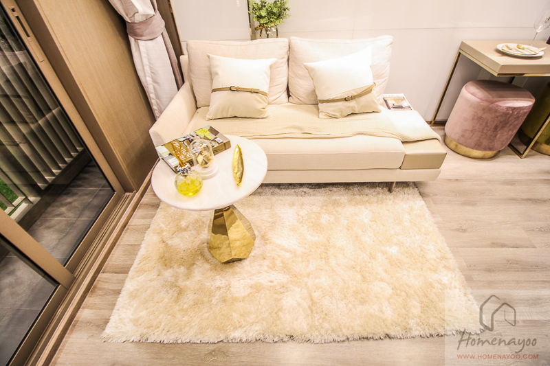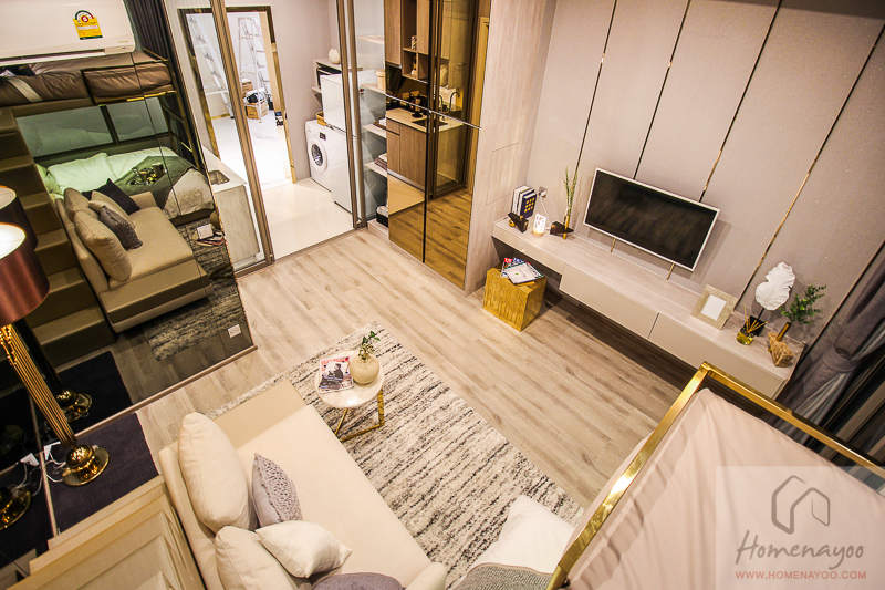 การออกแบบห้องพักอาศัยที่นี่มีให้เลือก 2 แบบหลักๆ คือ Studio ขนาด 23.00-27.00 ตร.ม. , 1 Bedroom ขนาด 33.50-34.50 ตร.ม. ห้องออกแบบมาดูโปร่งไม่อึดอัด ฝ้าสูง 3 ม. และมียูนิตพิเศษเพียง 15 ยูนิตที่เป็นแบบ High Loft คือฝ้าจะสูง 4.4-4.6 ม.จะอยู่ที่ชั้น 20-23 ตัวโครงการขายแบบ Fully Furnished ของที่ได้จะมี ชุดครัวอ่างล้างจาน และ Hob & Hood ของ Teka สุขภัณฑ์ภายในห้องน้ำของ Cristina พร้อมฉากกั้นส่วนเปียก ได้โซฟา ตู้เสื้อผ้า ชั้นวางทีวี แอร์ได้แบบติดผนังตรงห้องนั่งเล่นและห้องนอน กรอบประตูและหน้าต่างเป็นอลูมิเนียมพาวเดอร์โค้ทผิวทราย บานกระจกเป็น Laminate Double สียูโรเกรย์ เก็บเสียงและกรองแสงจากด้านนอกได้ดี