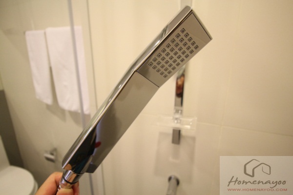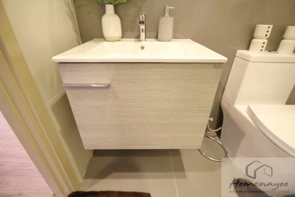 หน้าห้องน้ำมีเฟอร์บิลท์อินให้แบบนี้ จะใช้เป็นโต๊ะทำงานหรือโต๊ะเครื่องแป้งก็แล้วแต่ความประสงค์
