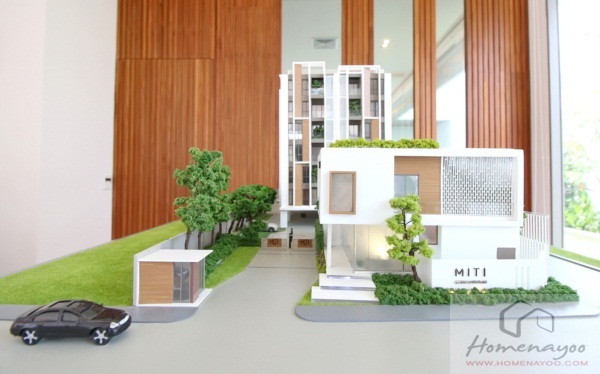 การออกแบบโครงการและวัสดุ – Miti Condo ลาดพร้าว-วังหิน เป็นคอนโด Low-Rise 2 อาคาร แบ่งเป็นอาคารคลับเฮ้าส์ 2 ชั้น 1 อาคาร และอาคารพักอาศัยสูง 7 ชั้น 1 อาคาร จำนวน 198 ยูนิต บนพื้นที่ประมาณ 2 ไร่เศษ ออกแบบโครงการด้วยคอนเซปต์ “ชีวิตที่แตกต่างอย่างลงตัว” เน้นความโปร่งสบายของผู้พักอาศัยและพยายามมสอดแทรกพื้นที่สีเขียวให้ลูกบ้านได้ใกล้ชิดธรรมชาติมากขึ้น