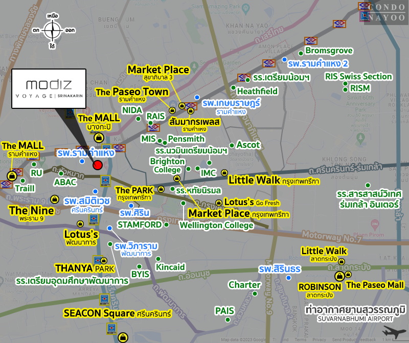 Modiz Voyage ศรีนครินทร์ คอนโดโครงการใหม่ จาก AssetWise โครงการที่ตั้งถนนศรีนครินทร์ แขวงหัวหมาก เขตบางกะปิ กทม. บนทำเลศักยภาพ เชื่อมต่อถนนสายสำคัญได้หลากหลาย ใกล้รถไฟฟ้าสายสีเหลือง สถานีศรีกรีฑา 300 ม.* ใกล้สนามบินสุวรรณภูมิ เพียง 15 นาที*