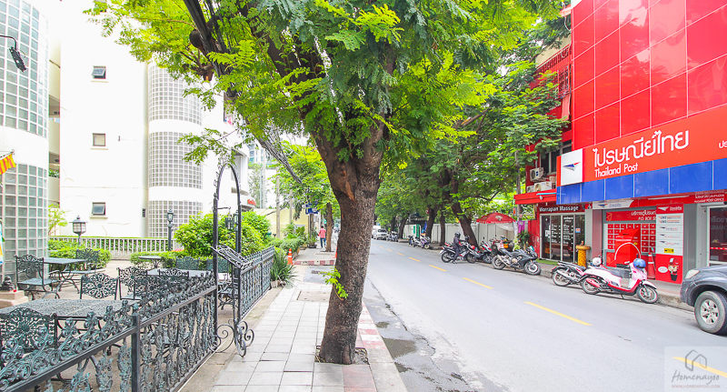 เดินออกมาจะเจอซอยสุขุมวิท 23 ตรงหน้า ตรงนี้จะมีร้านค้า และร้านอาหารขายอยู่