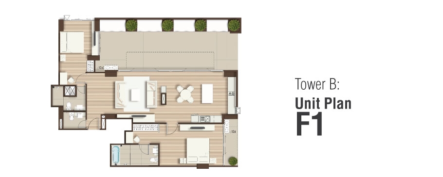 | ลักษณะห้องและขนาดห้อง | Studio / 1 Bed / 2 Bed ขนาดห้องตั้งแต่ 34.00 – 156.00 ตร.ม. |