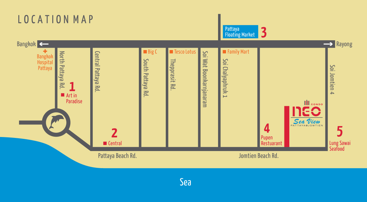 Neo Seaview พัทยา @จอมเทียน จาก Royal Hill Resort, Royal and Spa Condotel ตั้งอยู่บนถนนหาดจอมเทียนสาย 1 ต.นาจอมเทียน อ.สัตหีบ จ.ชลบุรี ใกล้ Art In Paradise, เซ็นทรัล เฟสติวัล, ตลาดน้ำ 4 ภาค และชายหาดจอมเทียน