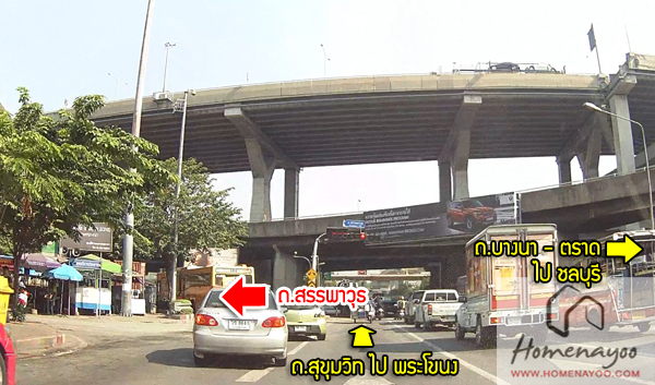 ตามป้ายให้ ทางออก 17 B สมุทรปราการ ข้ามแยกบางนา