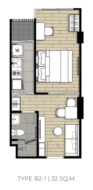 ห้อง 1 Bedroom Type B2 – 1 ขนาด 32.0 ตร.ม.