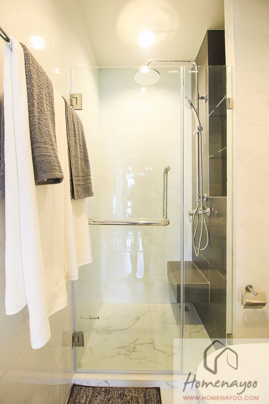 พื้นที่ส่วนห้องอาบน้ำติดตั้ง Shower Box ภายในติดตั้ง Rain Shower และ Hand Shower