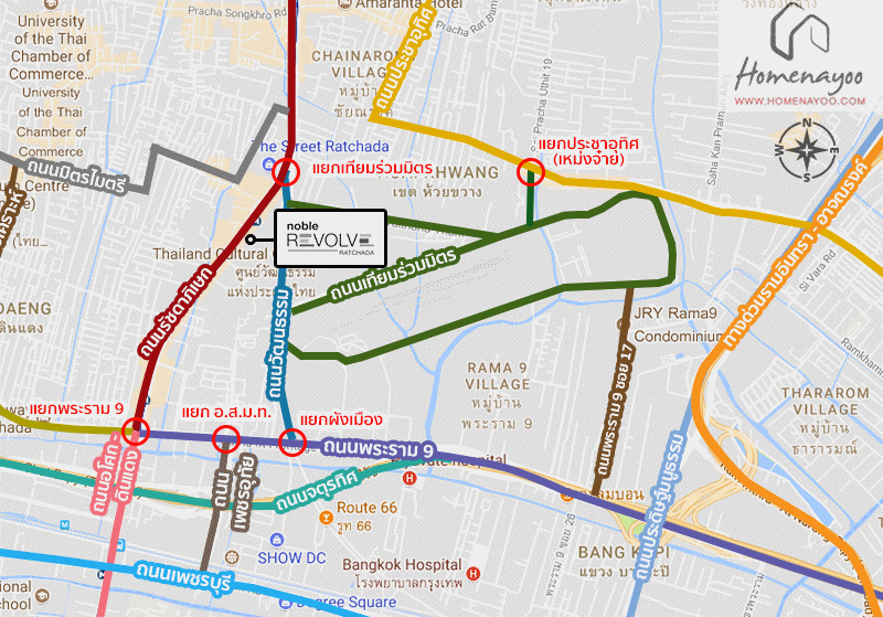 ที่ตั้งโครงการ : โครงการ Noble Revolve รัชดา ตัวโครงการอยู่ในซอยรัชดาภิเษก 6 เกือบๆติดถนนรัชดาภิเษก ใกล้ MRT ศูนย์วัฒนธรรมแห่งประเทศไทยในระยะเดินถึงได้สบายๆ อยู่ในทำเลที่ล้อมรอบไปด้วยอาคารสำนักงานและสิ่งอำนวยความสะดวกทั้งห้างใหญ่ๆและร้านอาหารทั่วๆไป