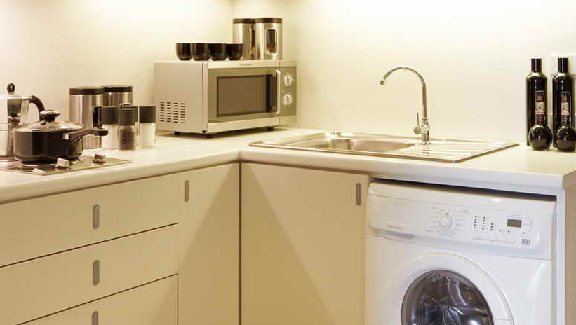 ภาพบรรยกาศบริเวณเคาน์เตอร์ครัวพร้อมเครื่องใช้ไฟฟ้า