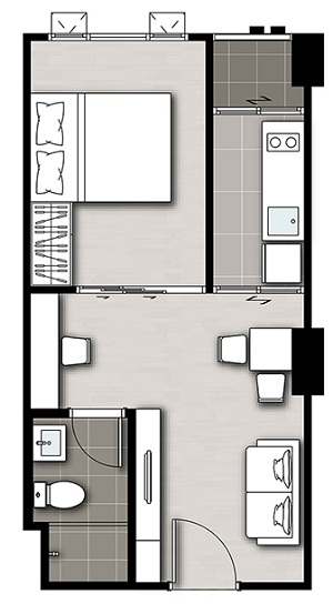 | ลักษณะห้องและขนาดห้อง | – 1 Bedroom : 24.30 – 34.40 ตร.ม. – 1 Bedroom Plus : 34.10 – 34.40 ตร.ม. – 2 Bedrooms : 41.40 – 65.10 ตร.ม. |